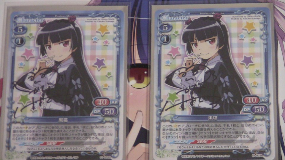 桐乃・黒猫の両方のいいとこ取りのつもりでデッキを組んだつもりが、実際はどっちつかずで、うまく動けませんでした。SR桐乃や桐乃・京介コンビはすさまじく強かったので、どうにかしてこのあたりを残しながら調整したいところ。