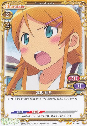 桐乃デッキ専用キャラ展開補助カード。SR桐乃のテキスト発動条件にもなります。