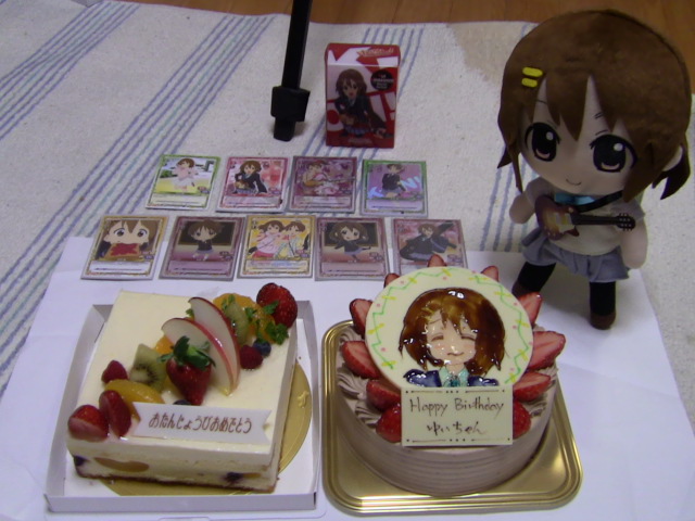 駄々っ子もふわふわも入っていない殴り型の学園祭。あちらが学祭さわ子+バックステージパスを完成。早めに決着をつけようとちび唯たちがフルアタックで5点乗っけた返しに学園祭+音楽の3アタックで打ち上げ2連打されて同点に・・・。ちび達をだして学祭キャラのブロックをしたり、殴ったり。3枚目の打ち上げを打たれて5-6まで追い込まれピンチになったが、相手がドローしすぎていたためデッキ切れに持ち込め、かろうじて勝ち。0/1/10/10唯が終盤にいい仕事しました。肝心のトースト唯は最後の最後まで引けませんでしたが・・・。