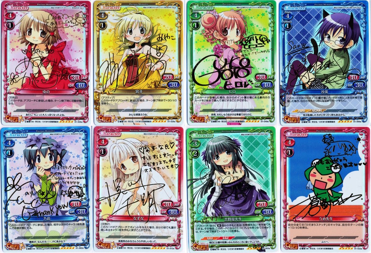 比較的軽い30/10宮子・30/10夏目・10/10ゆのが、SRうめ先生の援護を受けて40/10や40/30で殴って40/40と相打ちしたり、援護が無い状態でも乃莉投げて相打ちしたりするデッキ。10/10のバニラですら、うめ先生の援護+乃莉で40/40にプレッシャーをかけてしまう不思議。