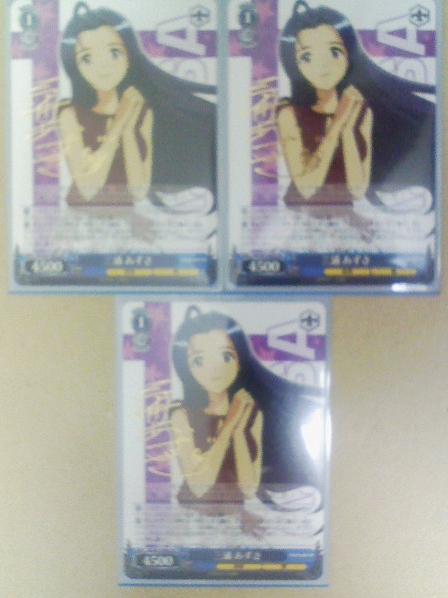 ショップで千早が500円切っていたので2枚購入。以前の大会の参加賞のパックから千早1枚引いているので、3枚そろった!