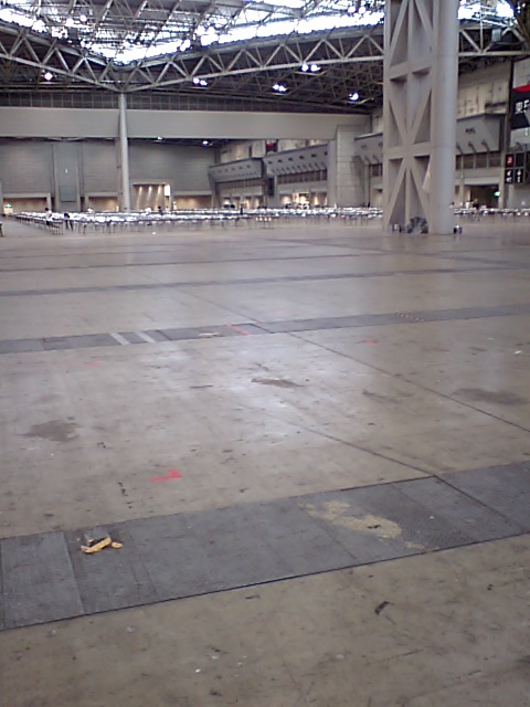 ↓向こうは東の5と6。手前の何もないのが東の4。これが30分足らずで机と椅子で埋め尽くされるんだから・・・。